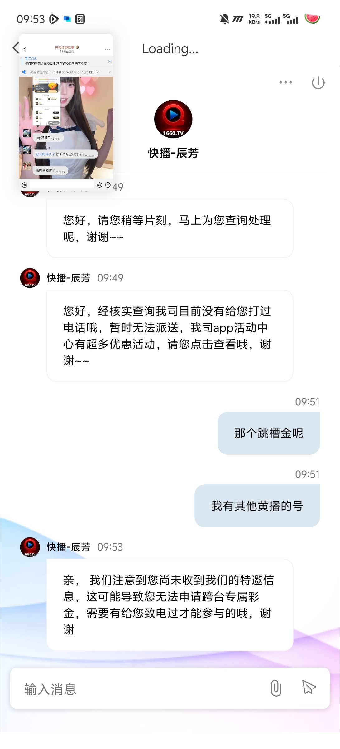 今天看老哥发的快播,我不是特邀,看到有平台跳槽金我给了其他黄播充值记录给我送了188无流水要求,快去撸随时黄