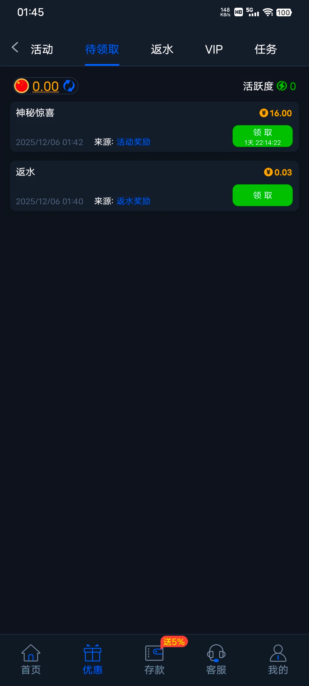 进去没领到 结果充了50提300