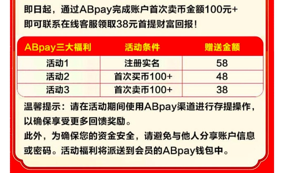 注册账号在充值哪里数字货币选AB钱包充值,提交10订单跳转在ab钱包然后自己实名,在绑定收款信息,(实名要刷脸,以前在别的平台实名ab钱包的也可以实名)