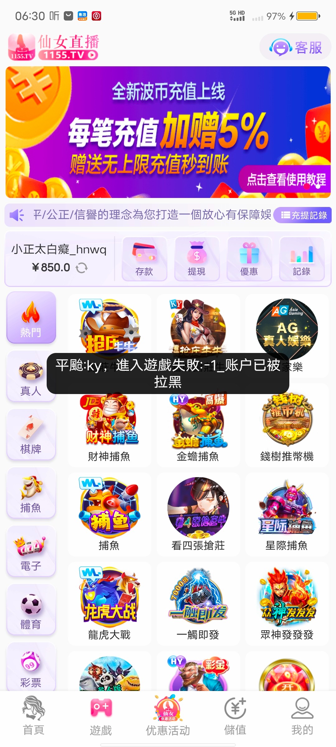 仙女真行,充值300提800都黑!!!注单审核